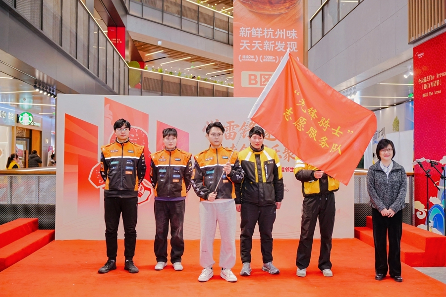 新就业群体组成的“先锋骑士”志愿服务队获授旗。激励小哥们更好发挥自身优势,从“城市服务者”“服务受益者”转变为深度参与社区治理的“流动探头”与“先锋力量”。新揭牌的上海国华广场“骑士驿站(国华广场站点)”配备饮用水、充电设备、冰箱等便民设施,成为“冷可取暖、热可纳凉、累可歇脚”的温馨港湾。